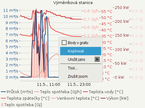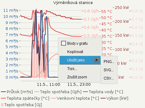 Po stisku pravého tlačítka myši v oblasti grafu a výběru Uložit jako je možné uložit zdrojová data z grafu jako datový soubor.